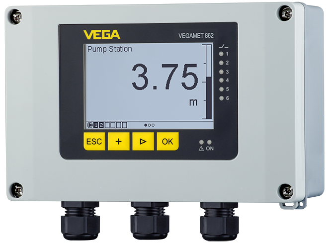 VEGAMET 862是一款滿足4~20mA或HART信號處理并顯示的控制器,數據可視化的大屏幕由一個外殼保護,可用于惡劣的現場條件。它可以簡單地轉換泵控制、明渠和堰上的流量測量、累加器、數據記錄器、差分、總和和平均值計算。使用VEGAMET 862,可以可靠地監控限值,并且可以切換繼電器,例如根據WHG進行的溢流保護。配套的VEGAMET控制器是對新款雷達儀表的完美補充,可以最佳地滿足水和污水處理行業的要求。利用它可以方便地控制泵、在河道中測量流量,并根據德國WHG的規定防范溢流。
